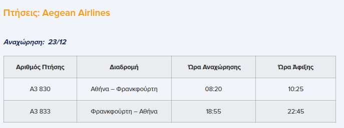- Αεροπορικά εισιτήρια (οικονομική θέση): Πτήσεις με Lufthansa Airlines / Aegean Airlines