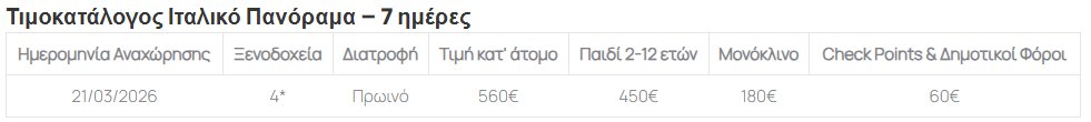 Από την αρχιτεκτονική της Βενετίας και τα εργαστήρια γυαλιού Μουράνο, μέχρι τα αξιοθέατα της Φλωρεντίας, της Σιένα και της Ρώμης, κάθε μέρα προσφέρει μοναδικές εμπειρίες και φωτογραφικές στιγμές. Η επίσκεψη στην Πομπηία ολοκληρώνει ένα πρόγραμμα πλούσιο σε ιστορία, πολιτισμό και φυσική ομορφιά, ιδανικό για οικογένειες, ζευγάρια και φίλους που θέλουν να γνωρίσουν την Ιταλία σε βάθος.