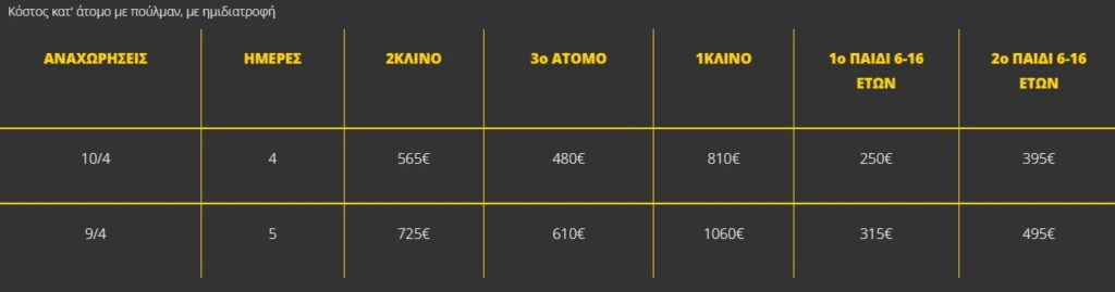 09/04 (5ήμεη), 10/04 (4ήμερη)