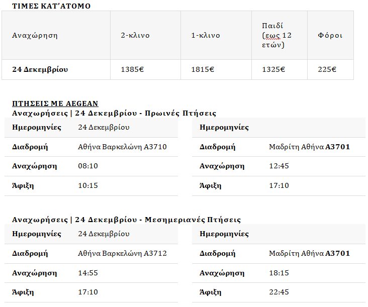 • Απευθείας πτήσεις Αθήνα-Βαρκελώνη & Μαδρίτη-Αθήνα ή αντίστροφα με την ποιότητα και την αξιοπιστία των πτήσεων της Aegean Airlines