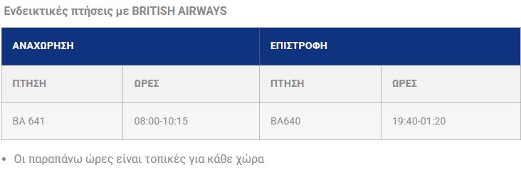 - Αεροπορικά εισιτήρια οικονομικής θέσης με British Airways.