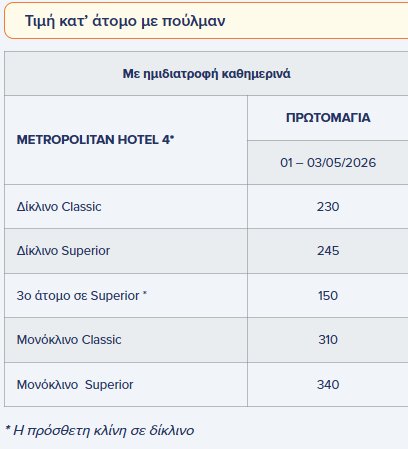 Αναχώρηση στις 07:00 από Αθήνα με ενδιάμεσες στάσεις με κατεύθυνση τον Πλαταμώνα, ένα πανέμορφο παραθαλάσσιο χωριό της Πιερίας, χτισμένο ανάμεσα στο καταπράσινο τοπίο του Ολύμπου και τα γαλάζια νερά του Θερμαϊκού κόλπου. Ξεχωρίζει για το εντυπωσιακό Κάστρο του, μεσαιωνικό φρούριο που δεσπόζει πάνω από την περιοχή. Θα απολαύσουμε τη θέα του Κάστρου και του Ολύμπου και θα έχουμε ελεύθερο χρόνο για βόλτα στο λιμανάκι, καφέ και φαγητό δίπλα στη θάλασσα. Άφιξη στη Θεσσαλονίκη και τακτοποίηση στο Metropolitan Hotel 4*. Ξεκούραση και το βράδυ δείπνο.