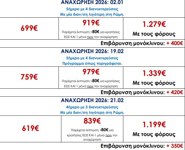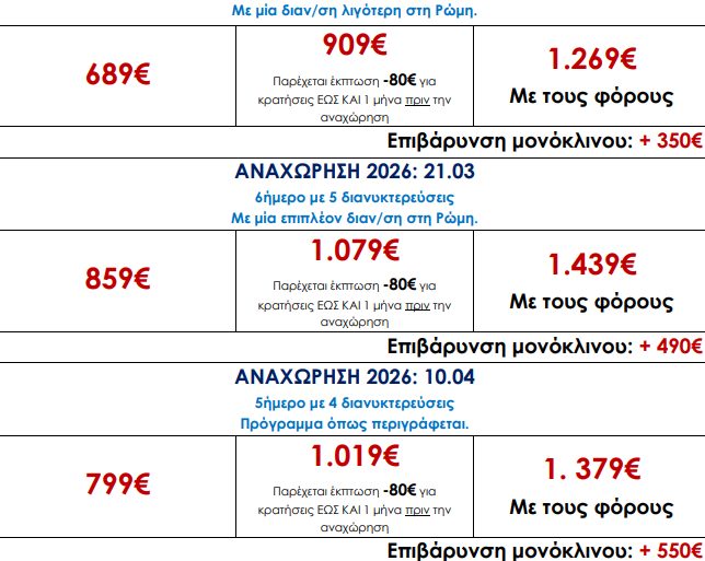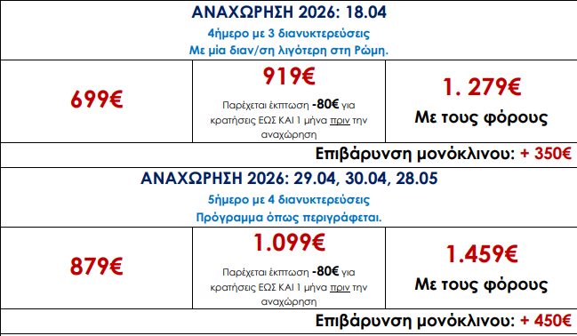 Ρώμης και με αρκετό ελεύθερο χρόνο για τις βόλτες και τις αγορές μας στην Αιώνια Πόλη.