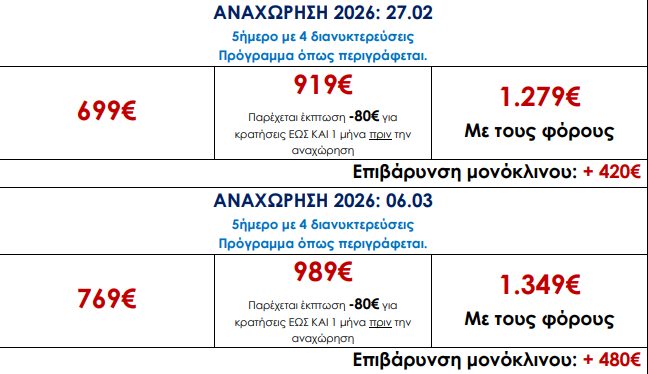 καταρτισμένο Έλληνα αρχηγό που ταξιδεύει μαζί μας από την Ελλάδα και που μας συνοδεύει