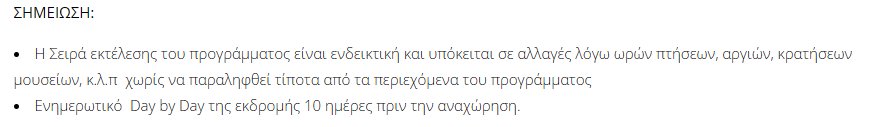 - Δημοτικό φόρο πόλης 8, 50€ περίπου το άτομο ανά διανυκτέρευση για ξενοδ. 4**** (Αφορά ενήλικες 17+ ετών) πληρώνεται επί τόπου στο ξενοδοχείο από τον πελάτη με την άφιξη.